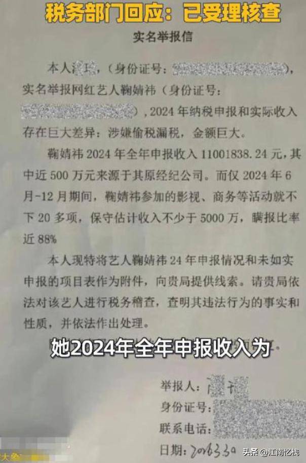 3月30日,邦度税务总局上海市税务局收到合于鞠某某涉税事项的实名举报,音尘传出后,网上众说纷纭。