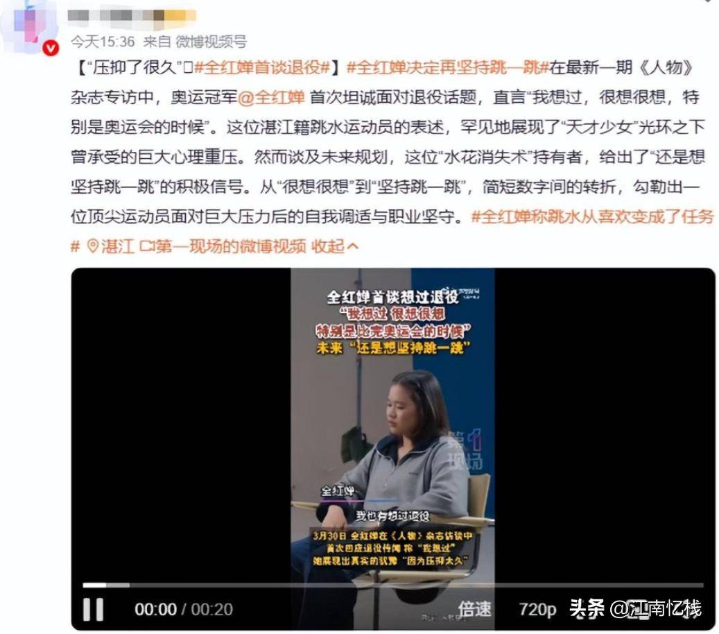 全红婵这边,正在坦言“很念退伍”后,她也给出了一个让人稍感慰问的信号——“照旧念争持跳一跳”。从一个十字道口到另一个十字道口,这个19岁的女孩没有急着做肯定,而是选拔“走一步看一步”。她正在好好安眠之后,会冉冉找到异日的道。
